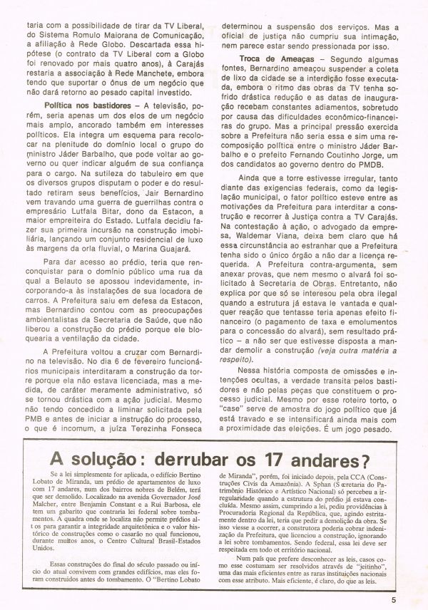 Nº 5  -  1ª quinzena de novembro de 1987