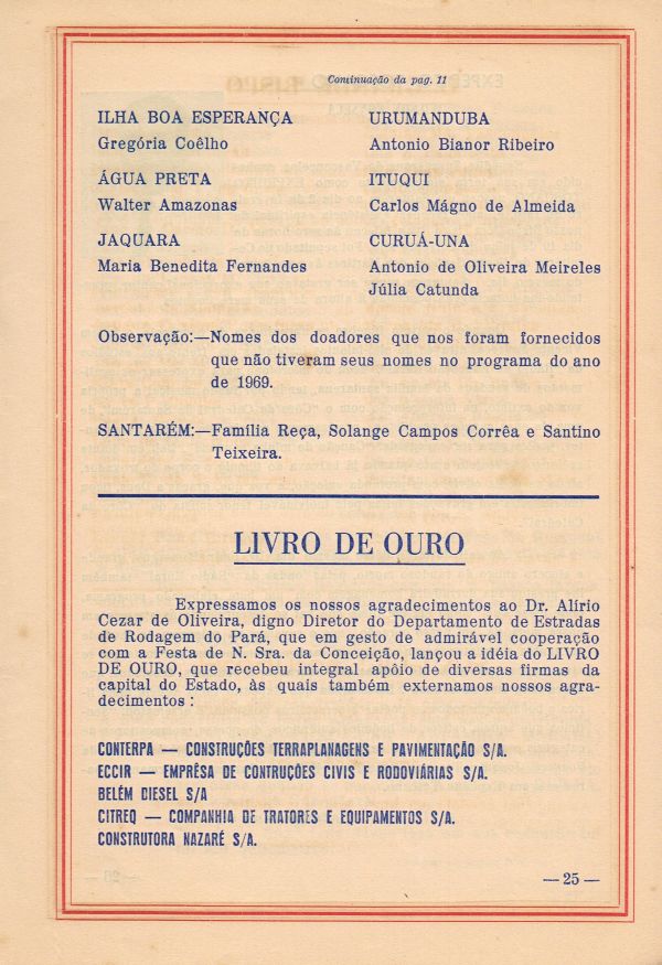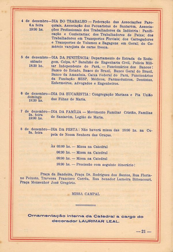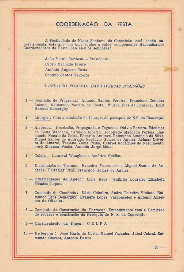 Programa da Festa de Nossa Senhora da Conceição