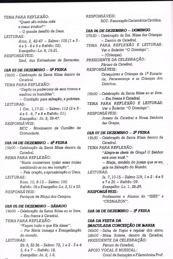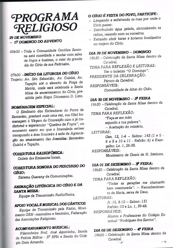 Programa da Festa de Nossa Senhora da Conceição