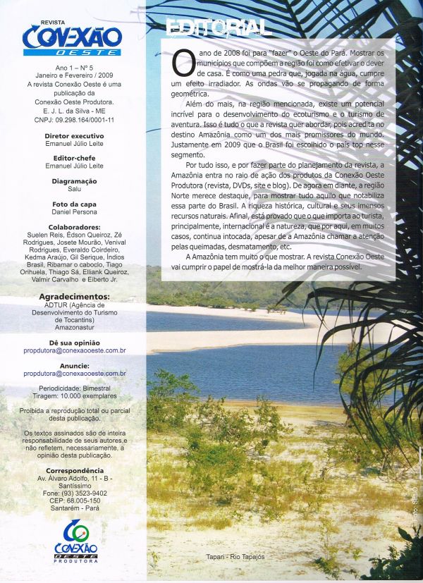 A Revista que destaca o Oeste do Pará e a Amazônia. Ano 01 - Nº 05 - Fevereiro/2009 Editor: Emanuel Júlio Leite Galeria de Imagens