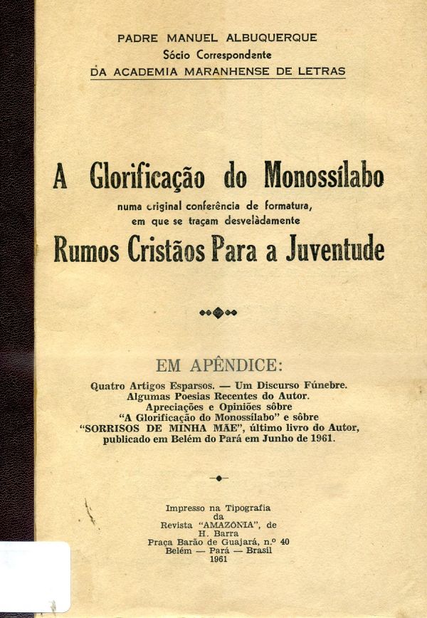 Ao encerrar sua fala Padre Manuel Albuquerque foi ovacionado e praticamente intimado a por no papel e publicar sua oração aos jovens. Assim nasceu "A Glorificação do Monossílabo", editado em Belém um após a solenidade de formatura do Dom Amando e Santa Clara.