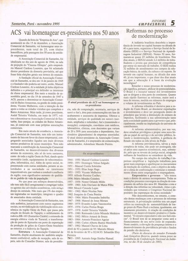 Órgão de divulgação da Associação Comércial de Santarém Ano I - Novembro de 1995 - Edição Nº 07 Galeria de Imagens