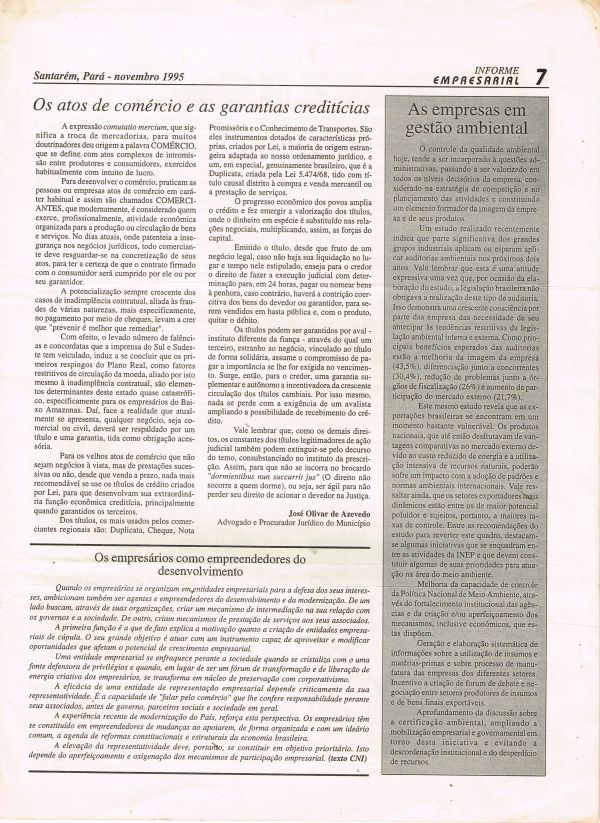 Órgão de divulgação da Associação Comércial de Santarém Ano I - Novembro de 1995 - Edição Nº 07 Galeria de Imagens