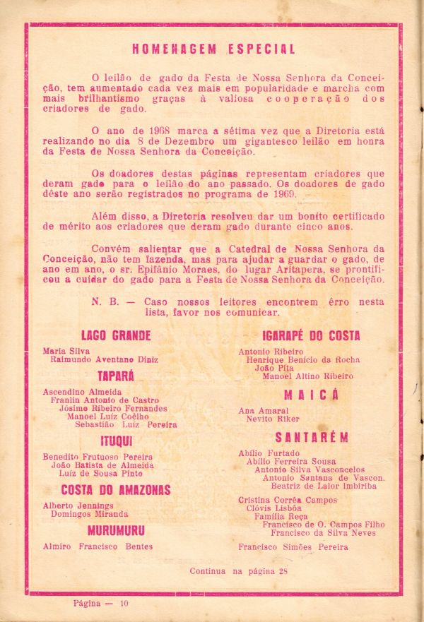 Programa da Festa de Nossa Senhora da Conceição