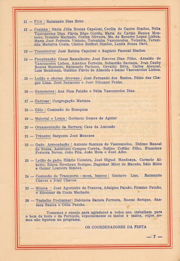 Programa da Festa de Nossa Senhora da Conceição