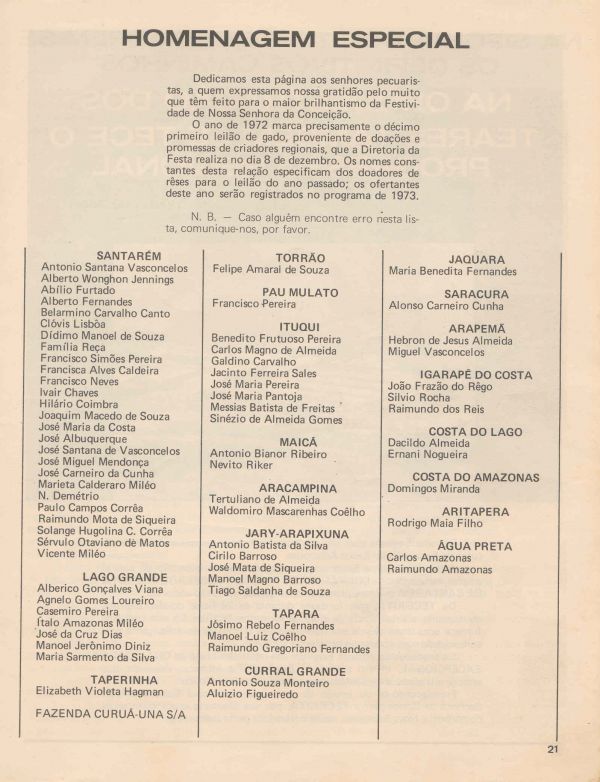 Programa da Festa de Nossa Senhora da Conceição