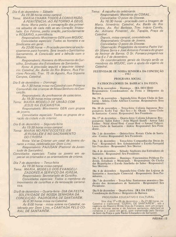 Programa da Festa de Nossa Senhora da Conceição