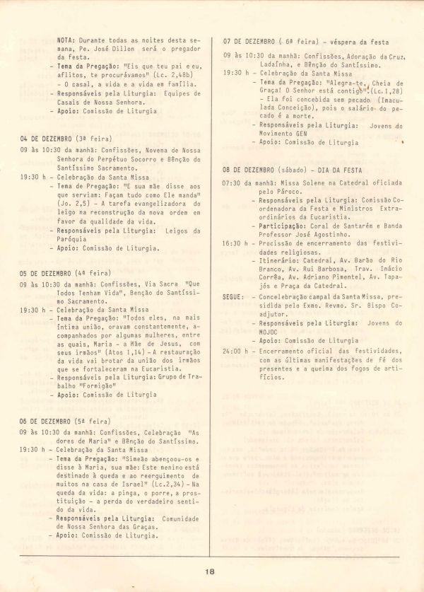 Programa da Festa de Nossa Senhora da Conceição