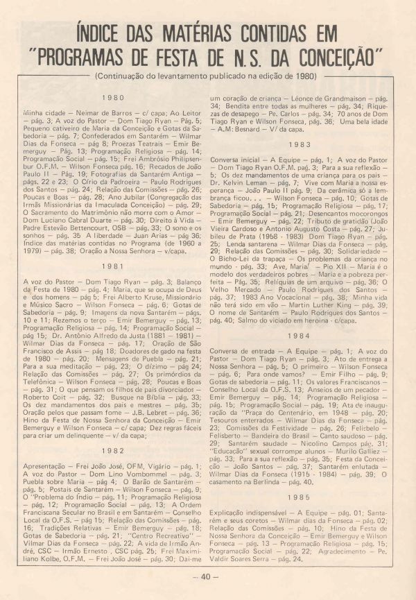 Programa da Festa de Nossa Senhora da Conceição