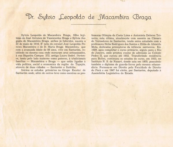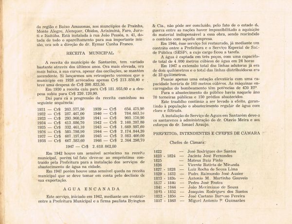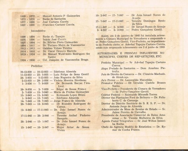 Em 1948, por ocasião do centenário da elevação de Santarém à categoria de cidade, o prefeito Aderbal Tapajós Caetano Corrêa (1948/51), a fim de homenagear a importante data, publicou o "Álbum do Centenário", fartamente ilustrado, onde traz uma radiografia da cidade, realçando os aspectos sócio-econômicos de Santarém.