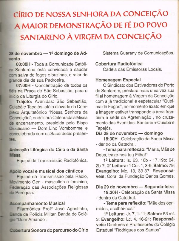 Programa da Festa de Nossa Senhora da Conceição
