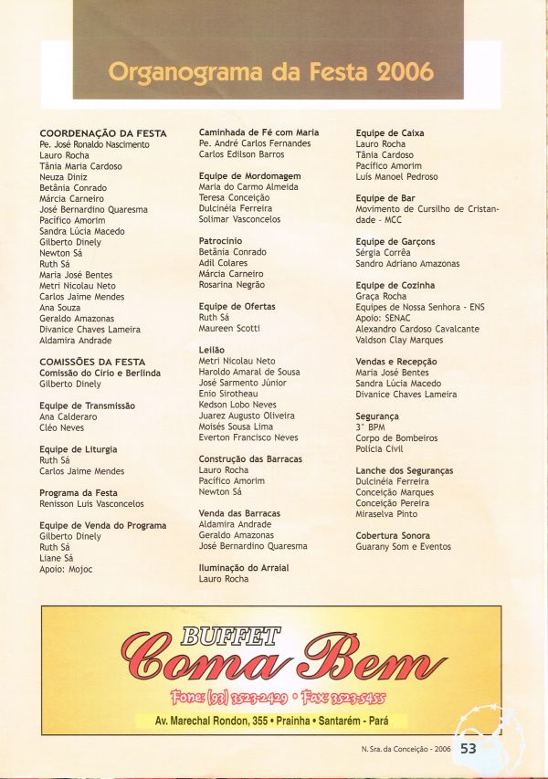 Programa da Festa de Nossa Senhora da Conceição