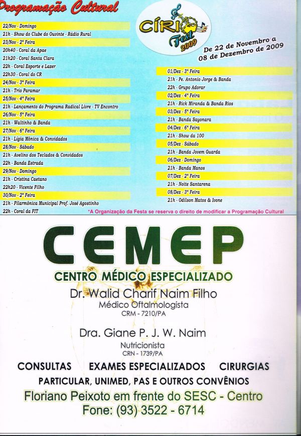 Programa da Festa de Nossa Senhora da Conceição